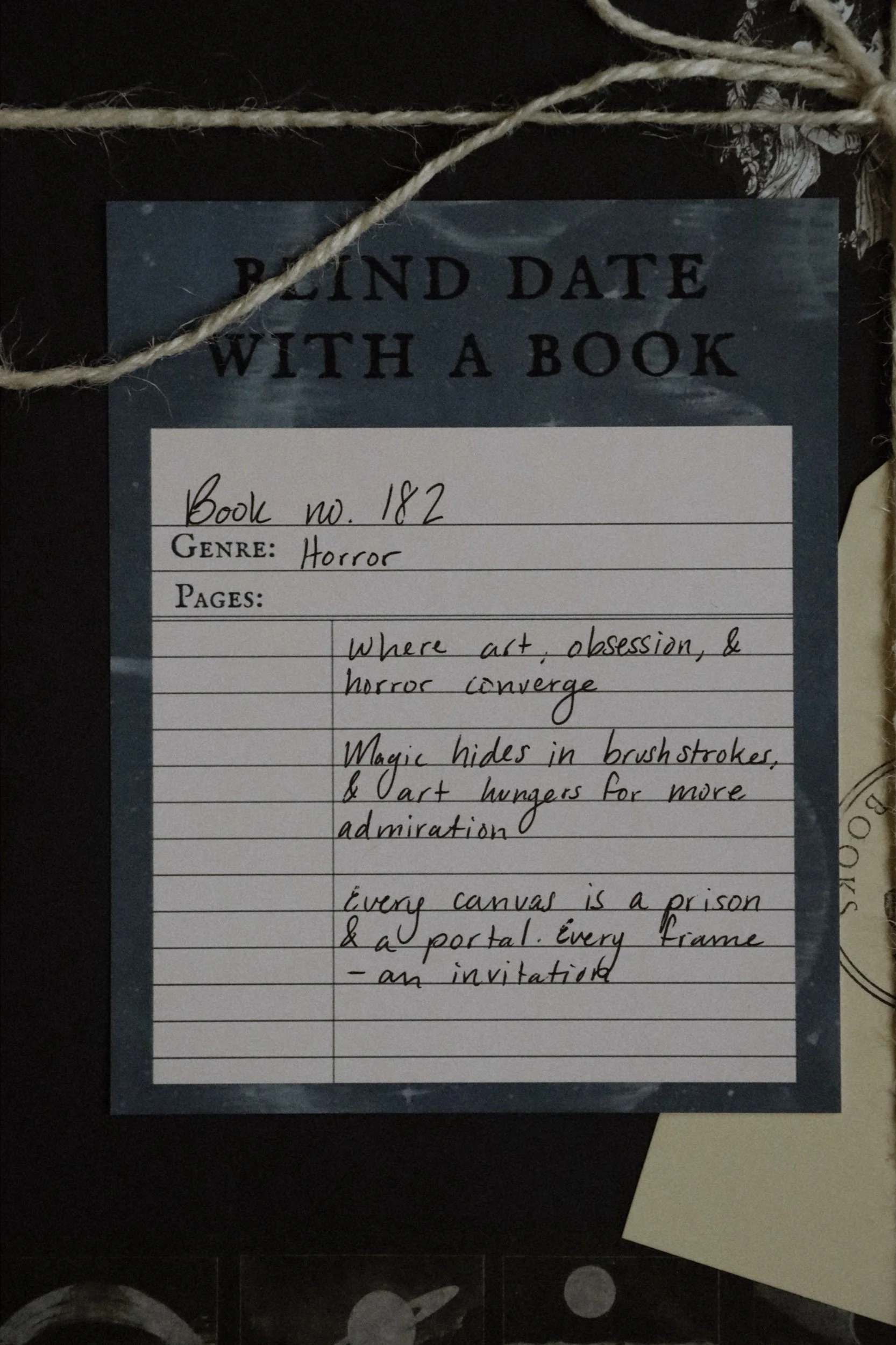 Categories: All Customizable All | Customizable | Book no. 63 (Historical Fiction) $25.00 Sold out Book no. 191 (Horror) $25.00 Book no. 190 (Mythology) $25.00 Sold out Book no. 189 (Romantasy) $25.00 Sold out Book no. 188 (Horror) $25.00 Book no. 187 (Historical Fiction) $25.00 Book no. 186 (Thriller) $25.00 Book no. 185 (Dark Romance) $25.00 Sold out Book no. 184 (Fantasy) $25.00 Book no. 183 (Fantasy) $25.00 Book no. 182 (Horror) $25.00 Book no. 181 (Romantasy) $25.00 Book no. 180 (Fantasy) $25.00 Book no. 179 (Fantasy) $25.00 Book no. 178 (Romance) $25.00 Book no. 177 (Fantasy) $25.00 Book no. 176 (Romantasy) $25.00 Book no. 175 (YA Romantasy) $25.00 Book no. 174 (Fantasy) $25.00 Book no. 173 (Romance) $25.00 Book no. 172 (Fantasy) $25.00 Book no. 171 (Horror) $25.00 Book no. 170 (Fantasy) $25.00 Book no. 169 (Fantasy) $25.00 Book no. 168 (YA Fantasy) $25.00 Book no. 167 (Romance) $25.00 Book no. 166 (Thriller) $25.00 Book no. 165 (Fantasy) $25.00 Book no. 164 (Horror) $25.00 Sold out Book no. 12 (Fantasy) $25.00 Customizable Blind Date with a Book $30.00